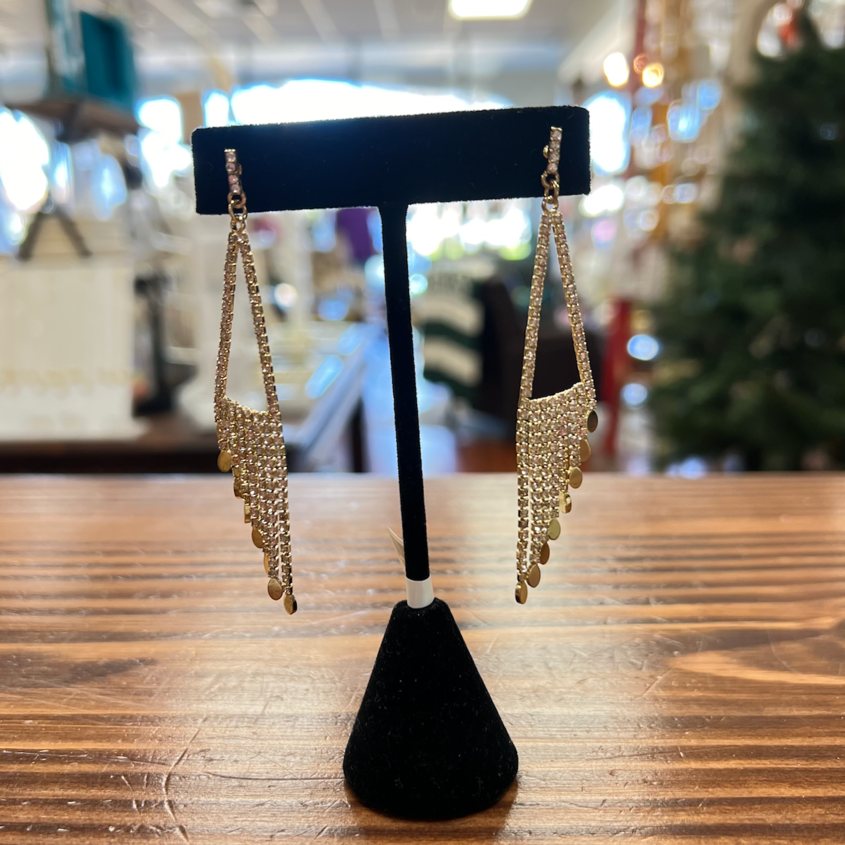 Gold-Triangle Fringe Drop Crystal Earrings